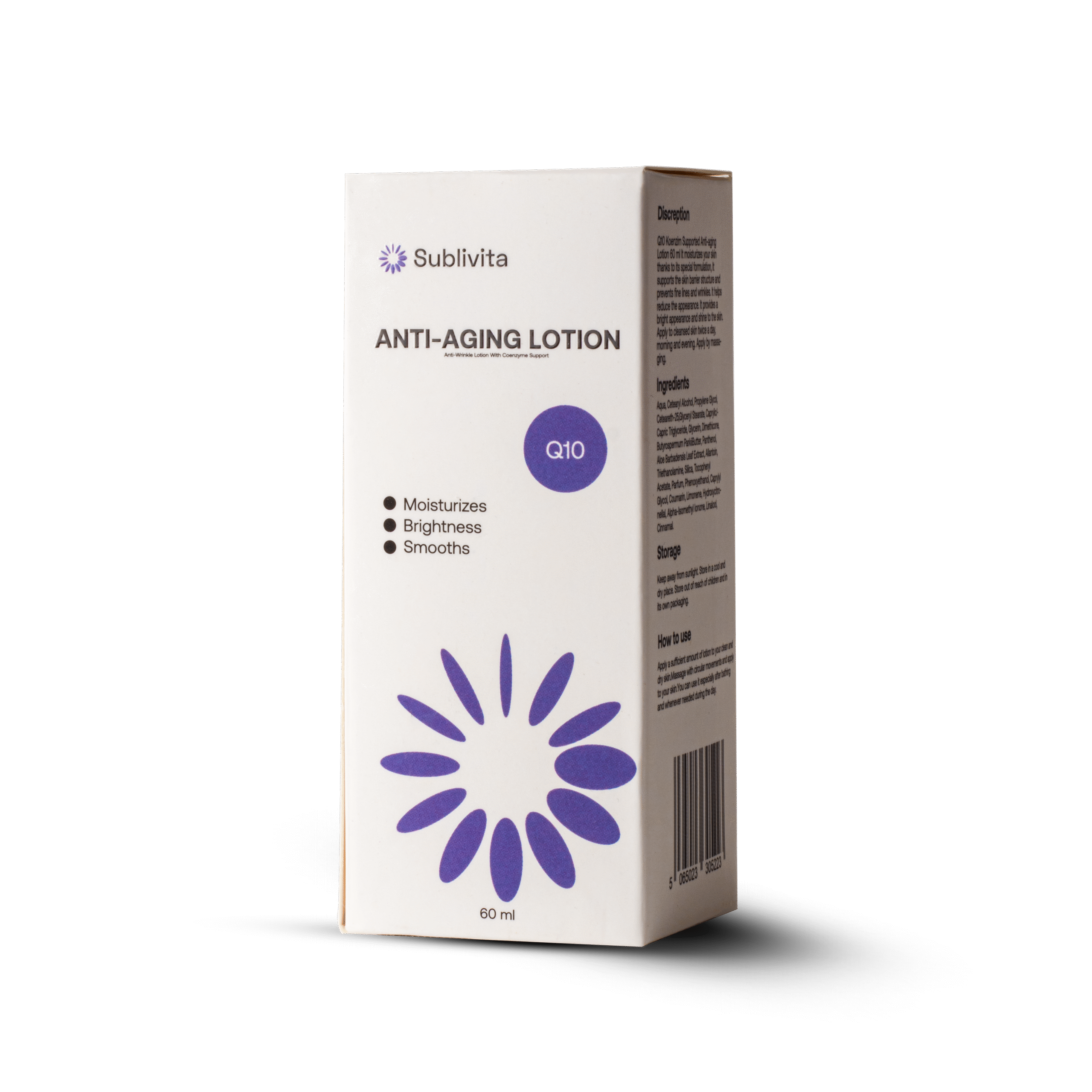 Anti-Aging Lotion with Coenzyme Q10 is specially formulated to help fight visible signs of aging. Enriched with Coenzyme Q10, it supports the skin barrier, enhances elasticity, and helps reduce the appearance of fine lines and wrinkles. The lightweight moisturizing formula deeply hydrates while restoring a healthy, radiant glow. With regular use, it promotes smoother, firmer, and more youthful-looking skin.