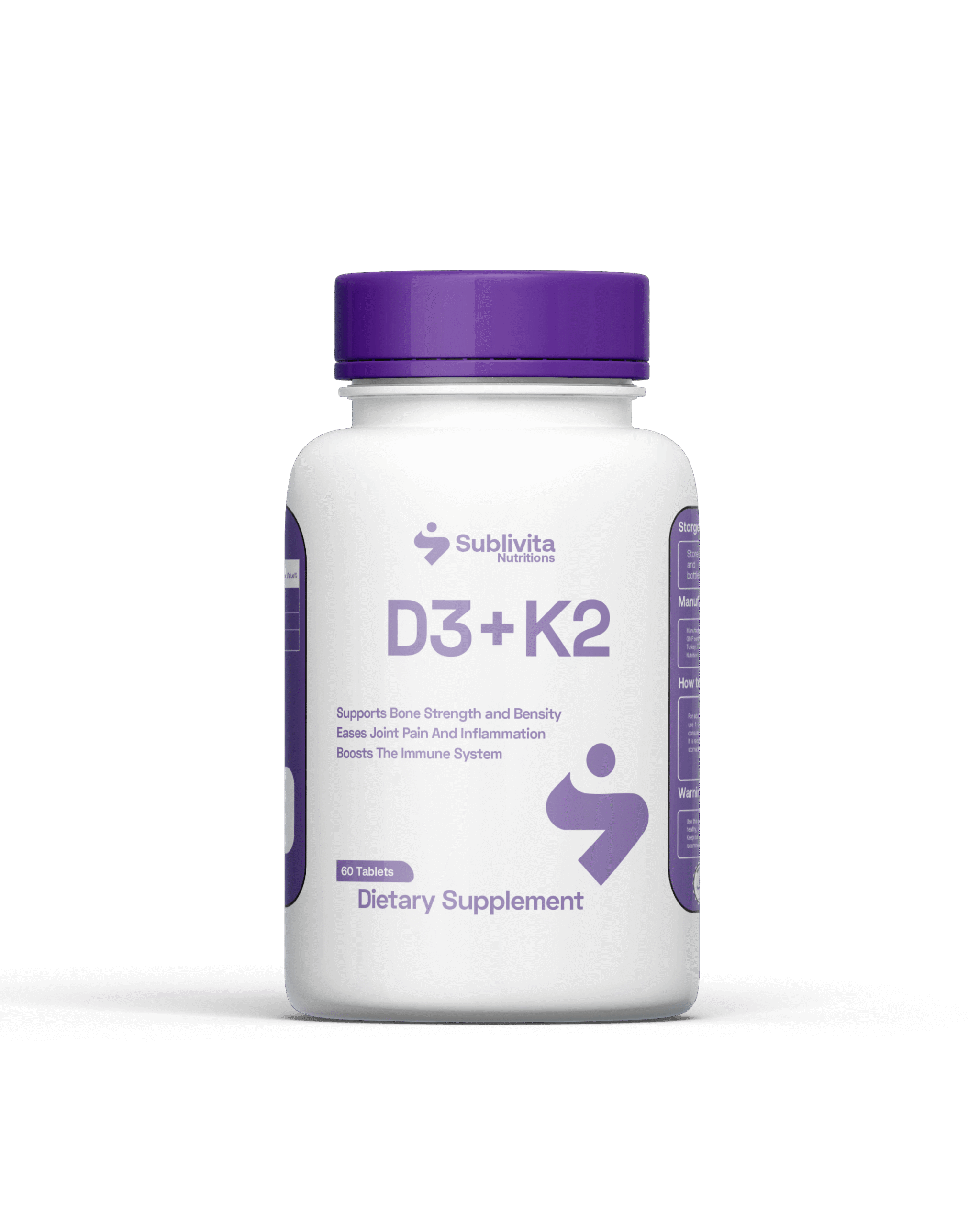 The combination of Vitamin D3 and K2 is essential for optimal bone and heart health. Vitamin D3 enhances calcium absorption, ensuring strong bones, while Vitamin K2 directs calcium to the bones and away from arteries, preventing calci cation. Together, they support cardiovascular health by reducing the risk of arterial sti ness and promoting healthy blood circulation. This powerful du also strengthens the immune system and supports overall wel-being, making it a vital addition to your daily routine.