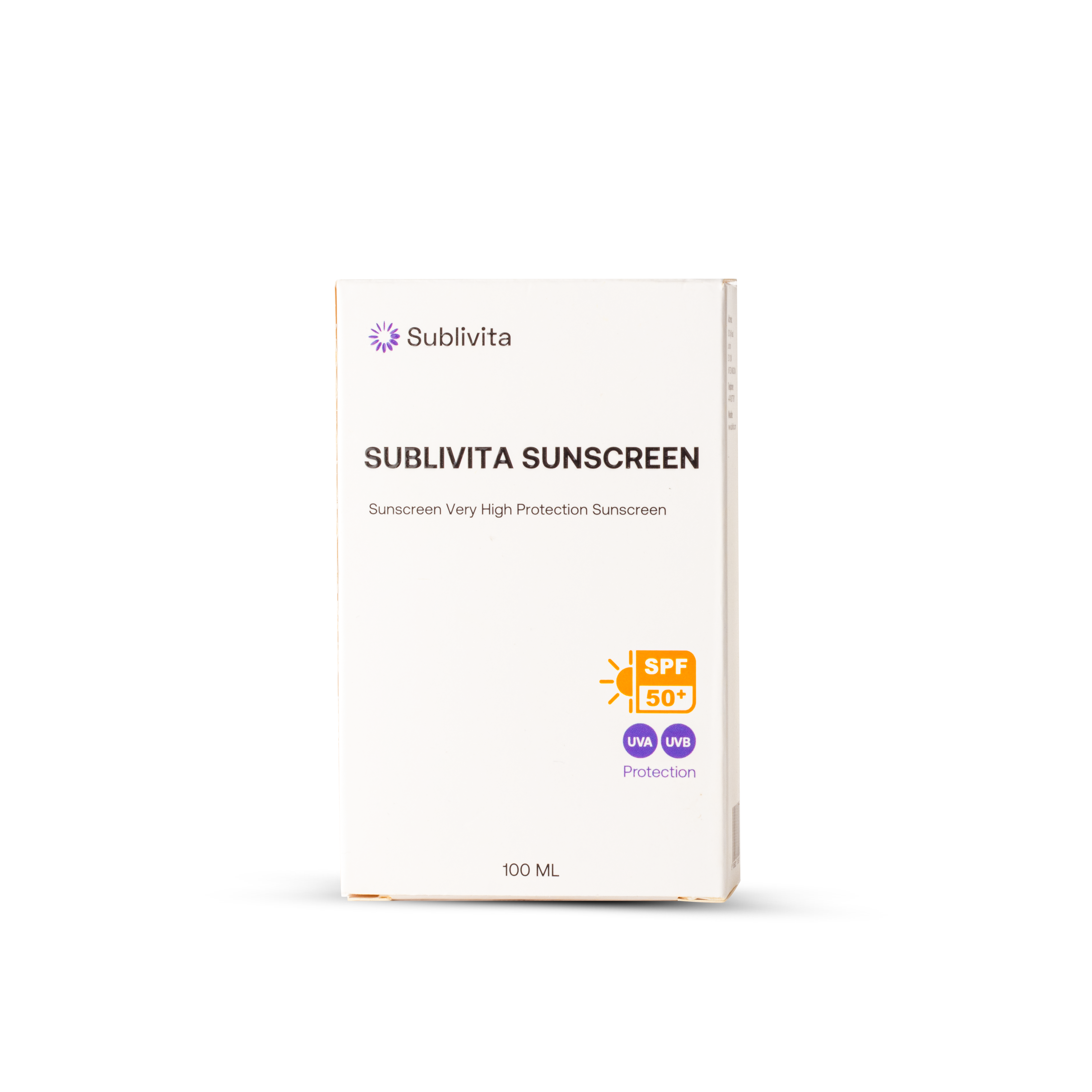 The SUBLIVITA Sunscreen SPF 50+ offers very high broad-spectrum protection against harmful UVA and UVB rays. Its advanced anti-blemish formula not only shields the skin from sun damage but also helps prevent the formation of dark spots, supports skin elasticity, and promotes a bright, even complexion. With regular use, it reduces the appearance of fine lines and wrinkles while protecting the skin against the visible signs of aging.